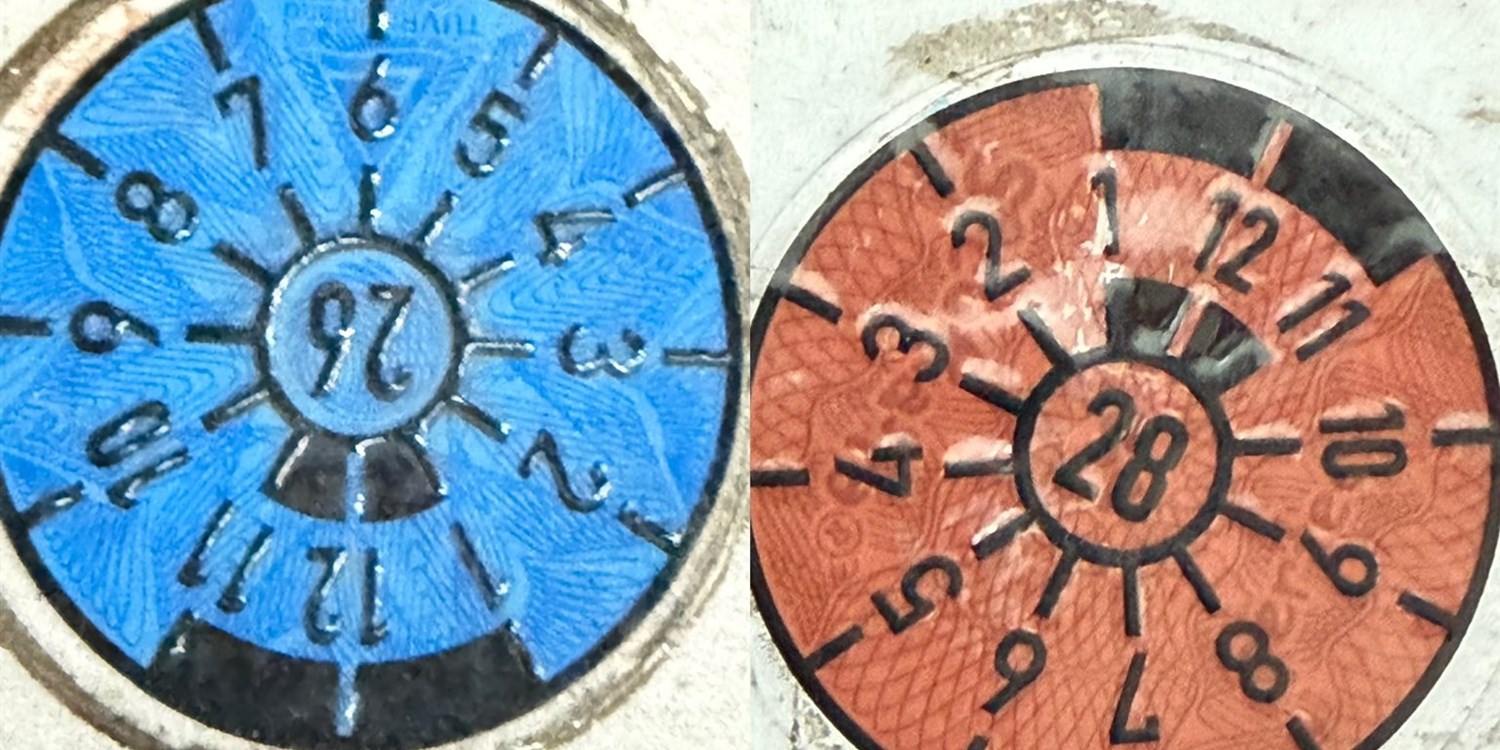 Wäre die Plakette noch Orange, wäre die TÜV Untersuchung schon letztes Jahr, 2025, fällig gewesen.